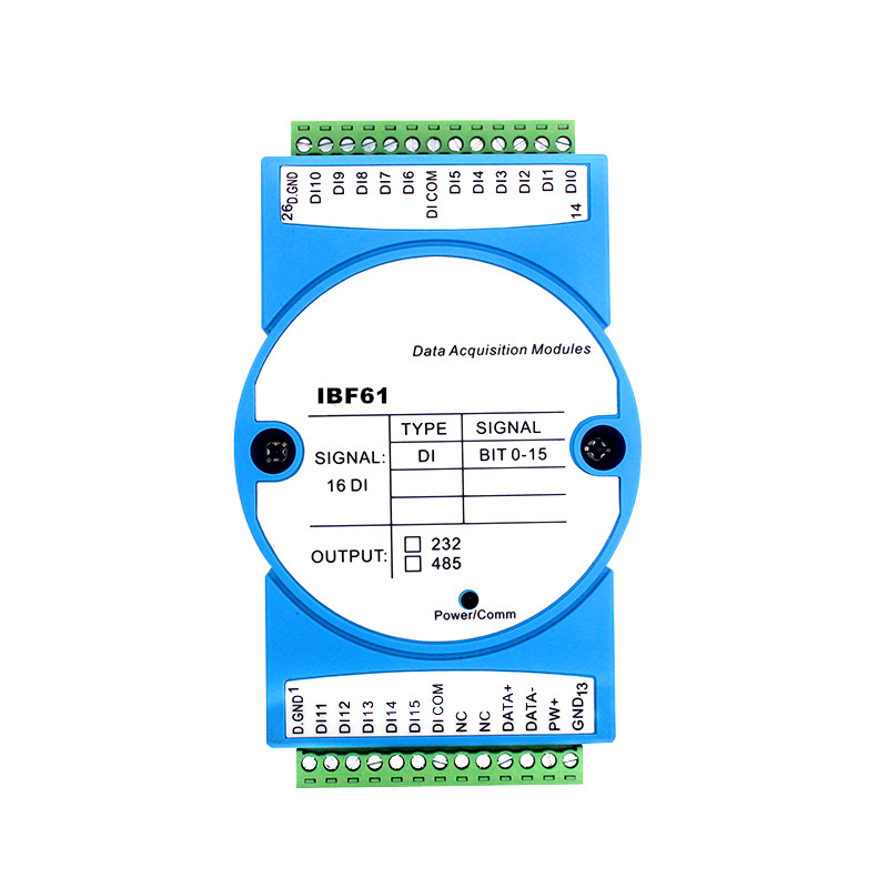 | 產(chǎn)品名稱 | 16通道開關(guān)量輸入轉(zhuǎn)RS-485/232采集模塊,數(shù)據(jù)采集遠(yuǎn)程DI模塊 IBF61 |
