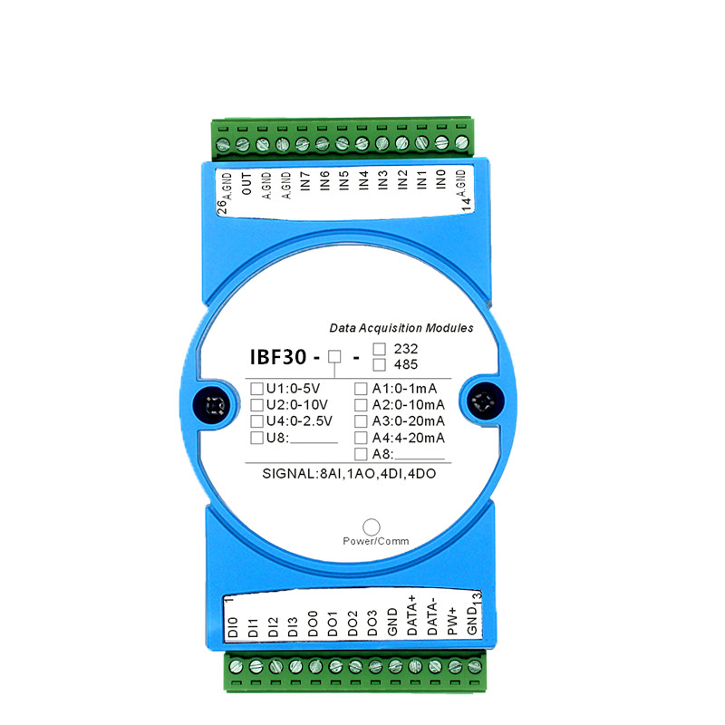 8AI,4DI,4DO混合信號轉(zhuǎn)RS-485/232,MODBUS數(shù)據(jù)采集模塊 IBF30